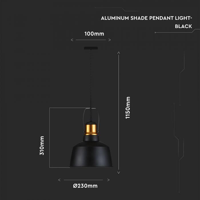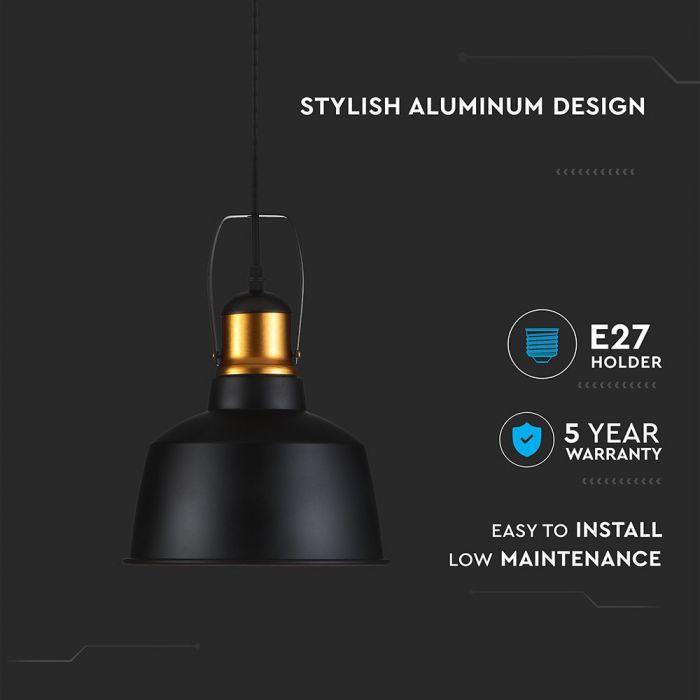 Светильник подвесной V-TAC, для ламп E27, диаметр 230мм, IP20, алюминий, черный+золото
